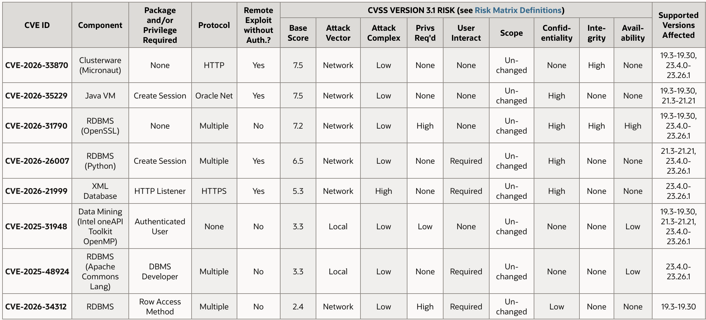 - CVE-2026-34312 RDBMS ... Zugriffe in der Datenbank, betrifft nur Oracle 19c Datenbanken